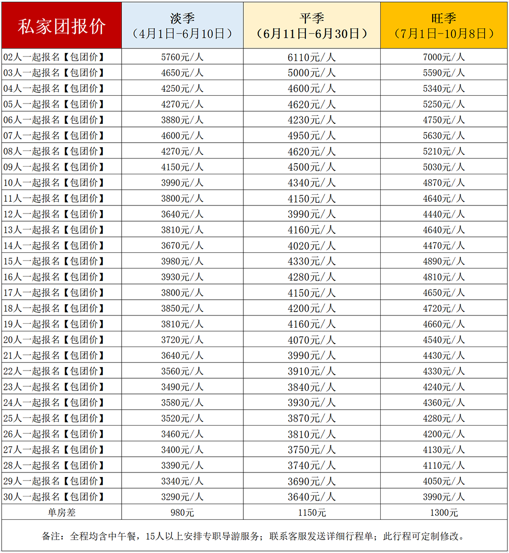 电询 起价说明 本起价指在可选出发日期中,成人报名的最低优惠价格。产品价格在选择不同出发日期、套餐、成人、儿童、老人及附加产品时会有所差异