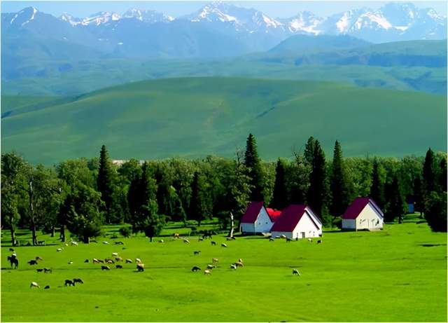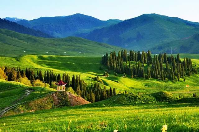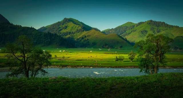 唐布拉大草原是亚洲四大最美草原之一,素有“百里画卷,天然画廊”之美誉,被誉为人间天堂。有诗人形容唐布拉是“天神恋爱的地方”,每至初夏,有无数画家、摄影家来此写生和采风。地处新疆天山北部尼勒克县境内的唐布拉大草原进入初夏,嫩绿的草原犹如一幅巨大的绿色地毯从天际铺展开来!