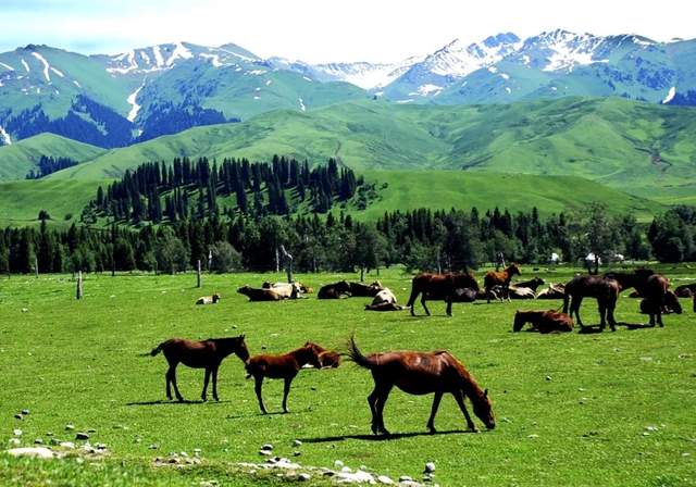 这里拥有草甸,草原,雪山,高大的云杉树,游人少,自然景美,商业气息不浓,是非常值得去的地方。而温热清爽的温泉,蓝蓝的天,绿茵茵的草坂,又无时不刻给人以美的享受。