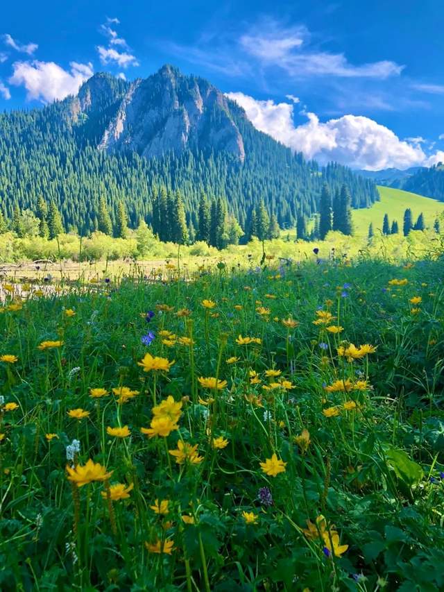 夏日,唐布拉草原,百花盛开,溪水淙淙,云杉苍翠挺拔,如画如屏,漫步其中,如行走在百里画卷,拾一朵山花,送给夏天,让美丽的心情与山间的清风,一起飞翔。