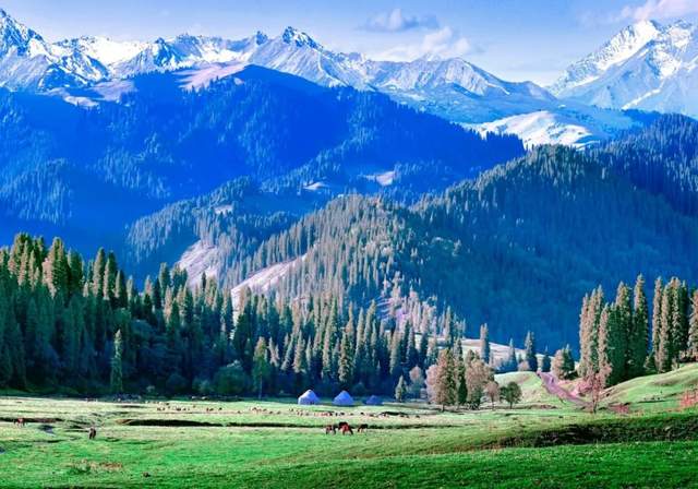 唐布拉国家森林公园位于新疆伊犁州尼勒克县东部,属森林、草原构成的自然风景区。以草原、温泉、雪峰、河流为主要特色,由唐布拉大草原、孟克特草原、高山湖泊、狗熊沟等组成。