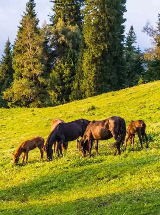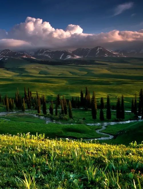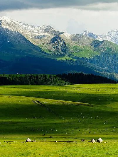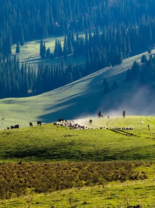 这种由草原、雪山、松林结合在一起的美,就是那拉提草原的过人之处。