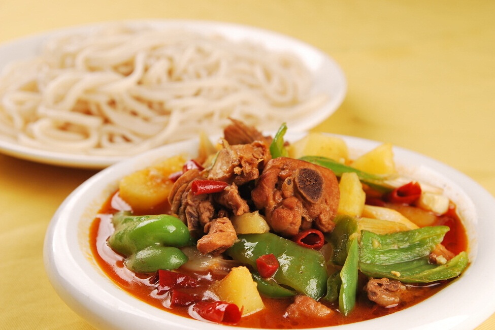 原料:羊肉、西红柿、鲜辣子(红辣子和绿辣子各半)、洋葱(新疆叫做皮牙子)、大蒜、干红辣椒、花椒少许,配以芹菜、茄子、 豆角、姜豆、圆白菜等时令蔬菜。