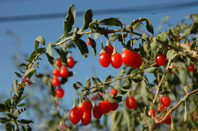 枸杞子,别名很多:河南称杞子,红耳坠;山西称地骨子.枸茄茄;江苏南通称枸杞头;天津称血杞子。属植物茄科落叶灌木,有野生和人工栽培两种。习惯上认为,产于宁夏回族自治区的中宁.中卫.宁武者品质最好。