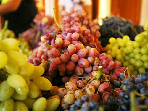 其果实成球形、卵形。椭园形等,有的葡萄晶莹如珍珠,有的鲜似玛瑙,而有的绿若翡翠。那五光十色、翠绿欲滴的鲜葡萄,令人垂涎不止。尤其是这里生产的无核白葡萄,皮薄、肉嫩、多汁、味美、营养丰富,素有“珍珠”美称,其含糖高达20-24%,超过美国加利福尼亚州的葡萄,居世界之冠,用无核白鲜葡萄晾制的葡萄干,含糖量高达60%,被人们视为葡萄中的珍品。