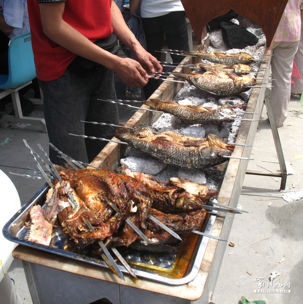“走遍南北疆,博湖鱼最香”。烤鱼“五道黑”已成为南来北往游客必品尝的一道大餐。